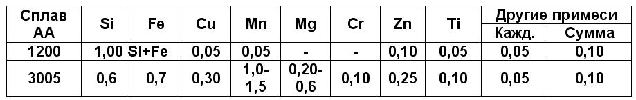 Таблица 1 – Химический состав алюминиевых сплавов для теплообменников