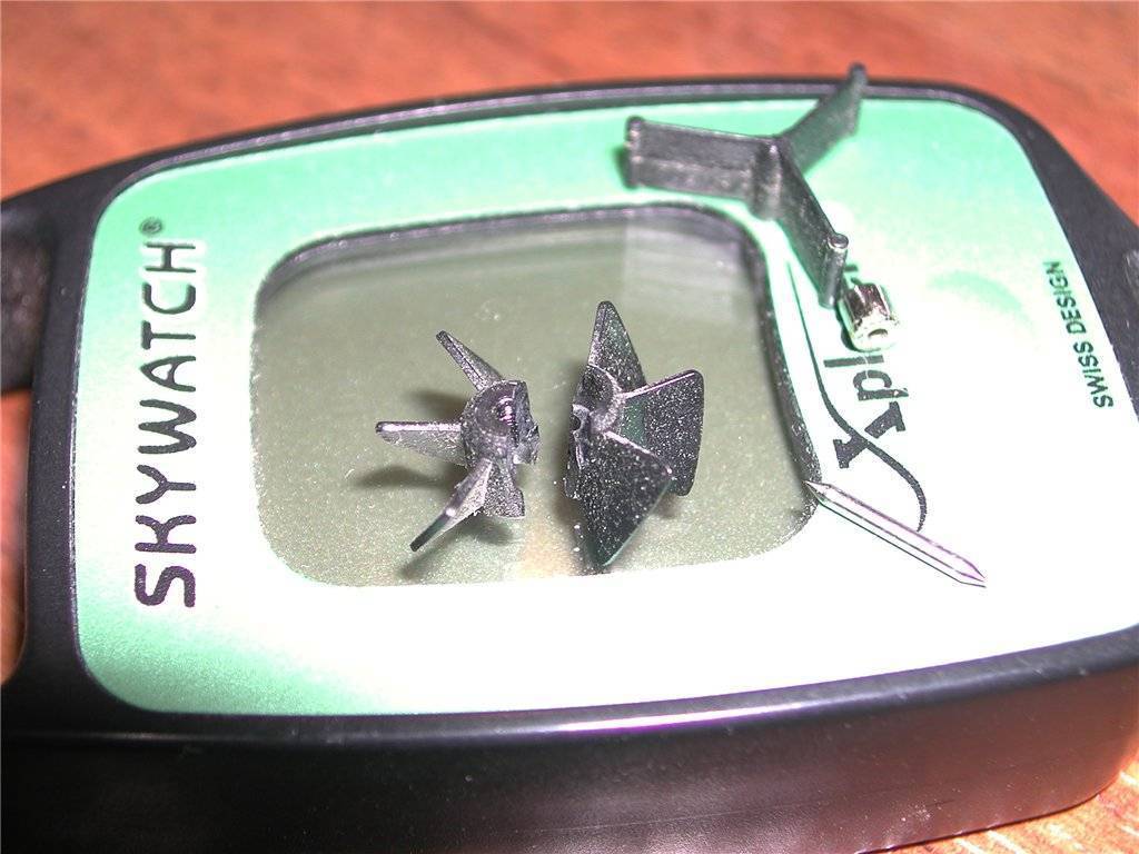 - Клеим магнит на вращающуюся часть узла. В период крепежа проводим балансировку узла вращения. Она нужна для того, чтобы анемометр не вращал при работе шест, на который он будет позже установлен. Магнит берем из комплектации велокомпьютера;