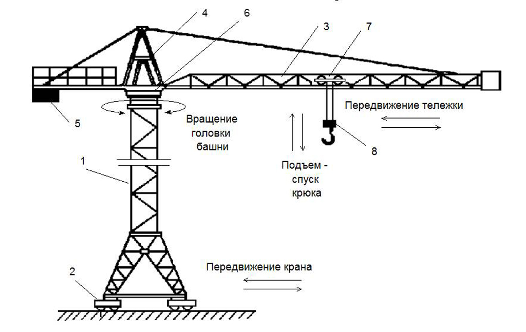 Схема башенных кранов с поворотной платформой и не поворотной башней
