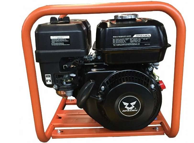 Отличный вариант мотопомпы, который подойдет для осушки водоемов, прудов, где разводят рыбу. Работает при условии наличия двигателя Субару, который по мощности равен 3,5 л.с. Что касается производительности, то она составляет 1 тысячу л за 1 минуту. Помпа для откачки воды бензиновая может перегонять частицы мусора, камни и водоросли, но диаметр их не должен быть больше 15 мм. Рамка сделана из железа, ни одна деталь не выходит за ее пределы. За счет этого оборудована целостность важных соединений при падении устройства. Сам же агрегат двигателя оборудован в области сплошной плиты-основания, которая позволяет убрать вибрацию.