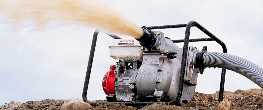 - Бензиновая помпа для грязной воды Honda WB20X производительностью 575 л/мин и напором 28 метров за 26 000 рублей.