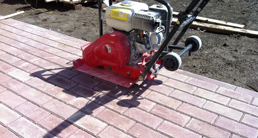 Если же вы планируете уплотнять тротуарную плитку, помните о том, что виброусилие у машины, вес которых составляет от 75 до 90 кг не должно превышать 18-20 кН. При более высоком значении данного параметра платформа будет сильно вдавливать плитку в основание и может разрушить ее.