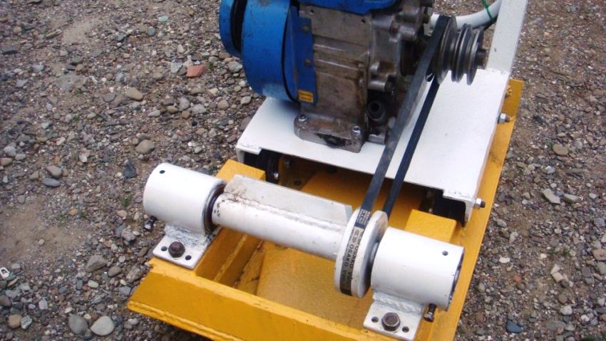 вращение с муфты передается на вал вибратора с помощью клиноременной передачи; создается центробежная сила, из-за которой начинает вибрировать основание виброплиты;