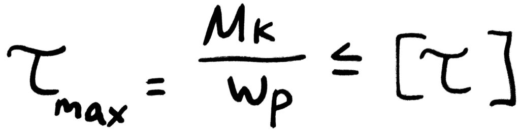 При кручении расчеты на прочность в принципе схожи с теми, что проводятся при растяжении. Только здесь вместо нормальных напряжений появляются касательные напряжения.