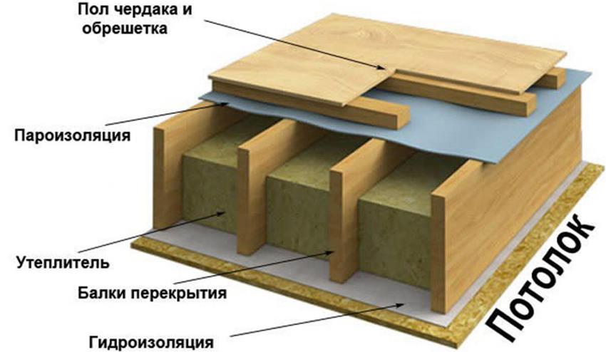 - выше него в конструкции пирога идет материал для теплоизоляции;