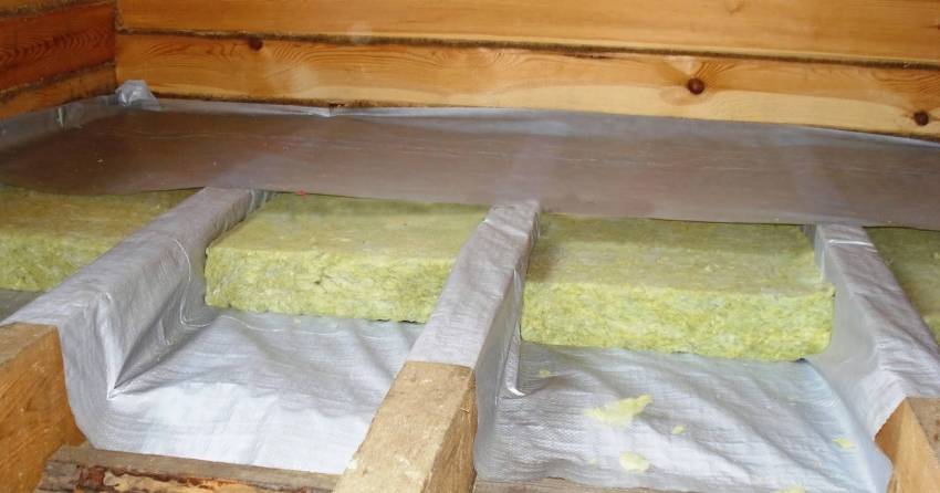 Следующим этапом является обустройство пароизоляции и теплоизоляции. Изоляция от пара выполняется снизу, чтобы исключить вероятность его проникновения в деревянные перекрытия, что может привести к их порче. Для этого применяется специальная пароизоляционная пленка. В качестве теплоизолятора лучше выбрать волокнистый материал на основе базальтовой ваты.
