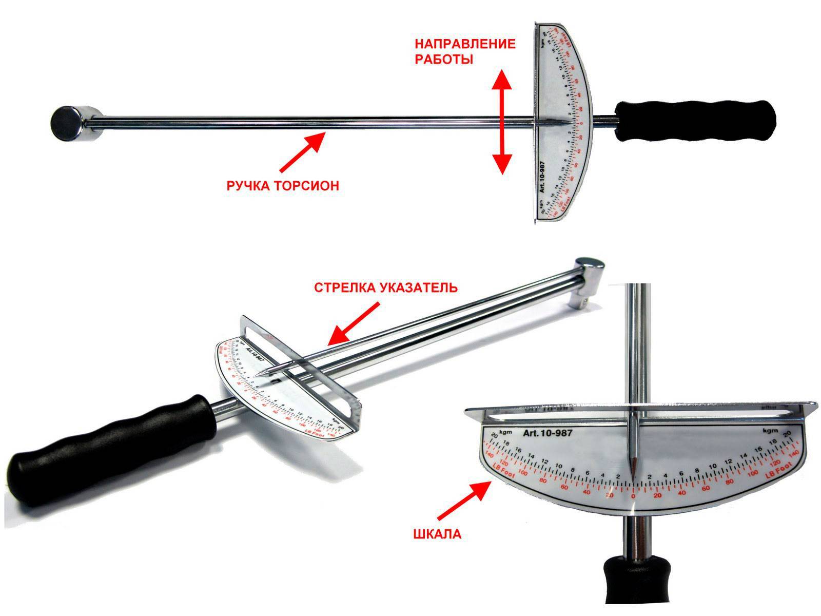 В основе инструмента лежит рукоятка, способная вращаться в двух направлениях. На корпус наносится основная шкала, а на ручке есть дополнительная. Основная шкала предназначена для демонстрации диапазона усилий, актуального для каждого конкретного динамометрического ключа.