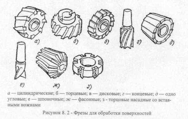 Существует множество типов конструкции фрез, используемых для выполнения разных технологических операций: