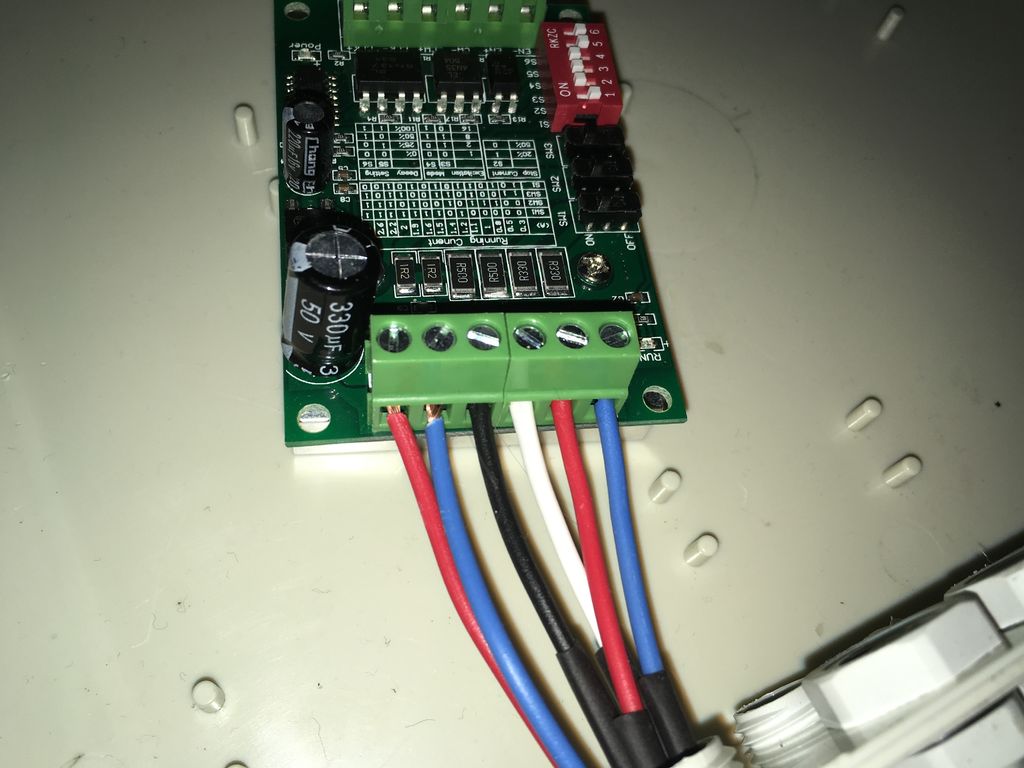 TB6600 — мое окончательное решение. Он полностью закрыт алюминиевым охлаждающим покрытием и прост в настройке. Теперь мои степперы работают по осям X и Y с 2,2А и по оси Z с 2,7А. Я мог поднять до 3А, но поскольку у меня есть закрытая коробка для защиты цепей от алюминиевой пыли, я решил использовать 2,2А, что достаточно для моих нужд и почти не выделяет тепла. Также я не хочу, чтобы степперы уничтожили машину в случае ошибки, когда я даю им слишком много мощности.