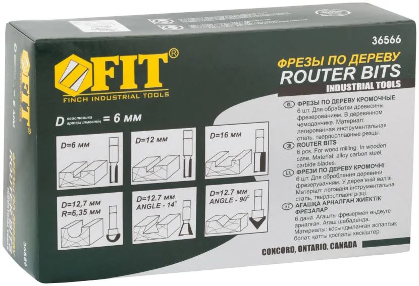 - Включает шесть кромочных насадок с радиусами 3, 4, 5, 6, 8 и 10 мм, которые оснащены нижним опорным подшипником. Хвостовик — 8 мм.
