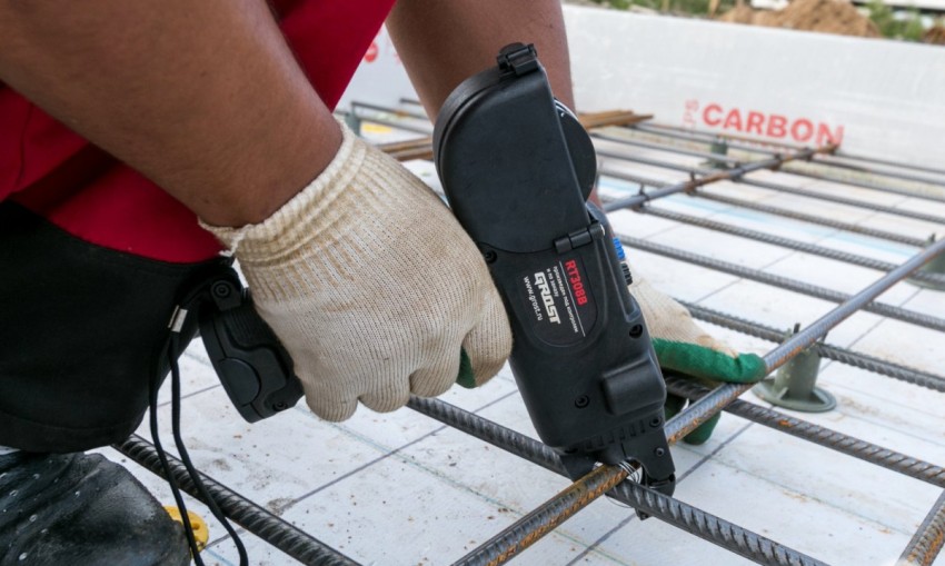 Толщина прутьев подбирается с учетом конструкционных, снеговых и эксплуатационных нагрузок на поверхность. В ребрах жесткости не следует устанавливать инженерные коммуникации. Чтобы не повредить утеплитель, пространственный арматурный каркас рекомендуется собирать отдельно, а затем нужно уложить его в готовом виде на специальные фиксаторы в зоне расположения ростверка, где каркасы соединяются между собой. Увязка сетки для плиты выполняется на месте. Нижняя конструкция устанавливается на фиксаторы из ПВХ.