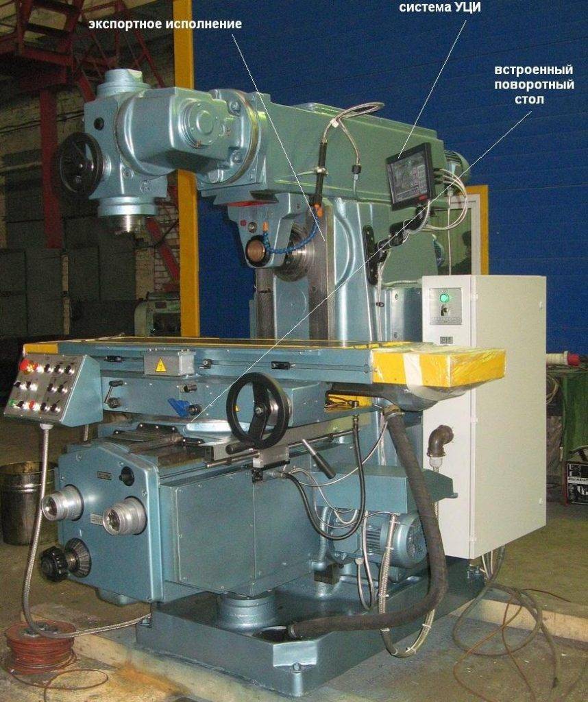 Этот вид фрезерных станков отличен от собратьев наличием сверлильно-фрезерной головки. Такая особенность предоставляет возможность обрабатывать наклонные и угловые поверхности, а также пазы негабаритных деталей. Вращение рабочей головки может осуществляться в противоположных направлениях.