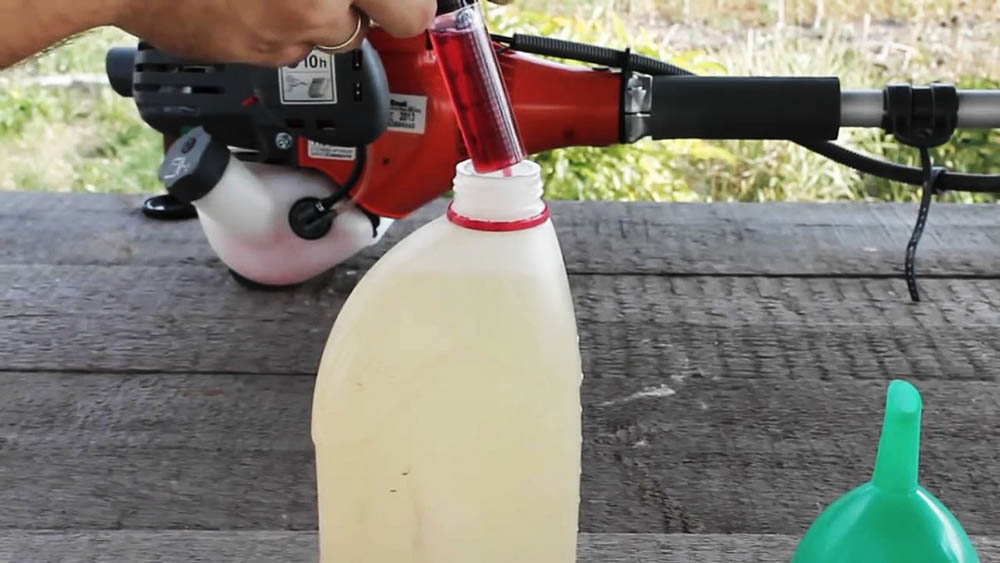 Кроме соблюдения пропорции, необходимо также научиться готовить смесь. Ведь вариант доливки масла в бензобак, является категорически противопоказанным, хотя некоторые так делают. Если купили триммер или бензокосу, то понадобятся расходные материалы, которыми будете пользоваться для приготовления смеси. Инструкция по приготовлению топливной смеси в триммер имеет следующий вид: