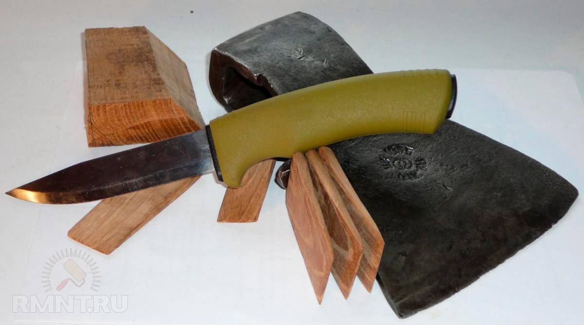 Согласно бытующему у новичков убеждению, деревянные клинья должны быть из того же дерева, что и топорище. Но это не так.