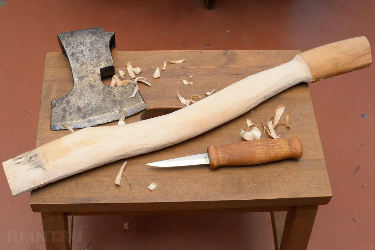 Важно! Древесина для топорища обязательно должна быть хорошо просушенной. Если заготовка делается вручную в зимнее время, то обязательно перед насадкой следует подержать её в тепле два-три дня
