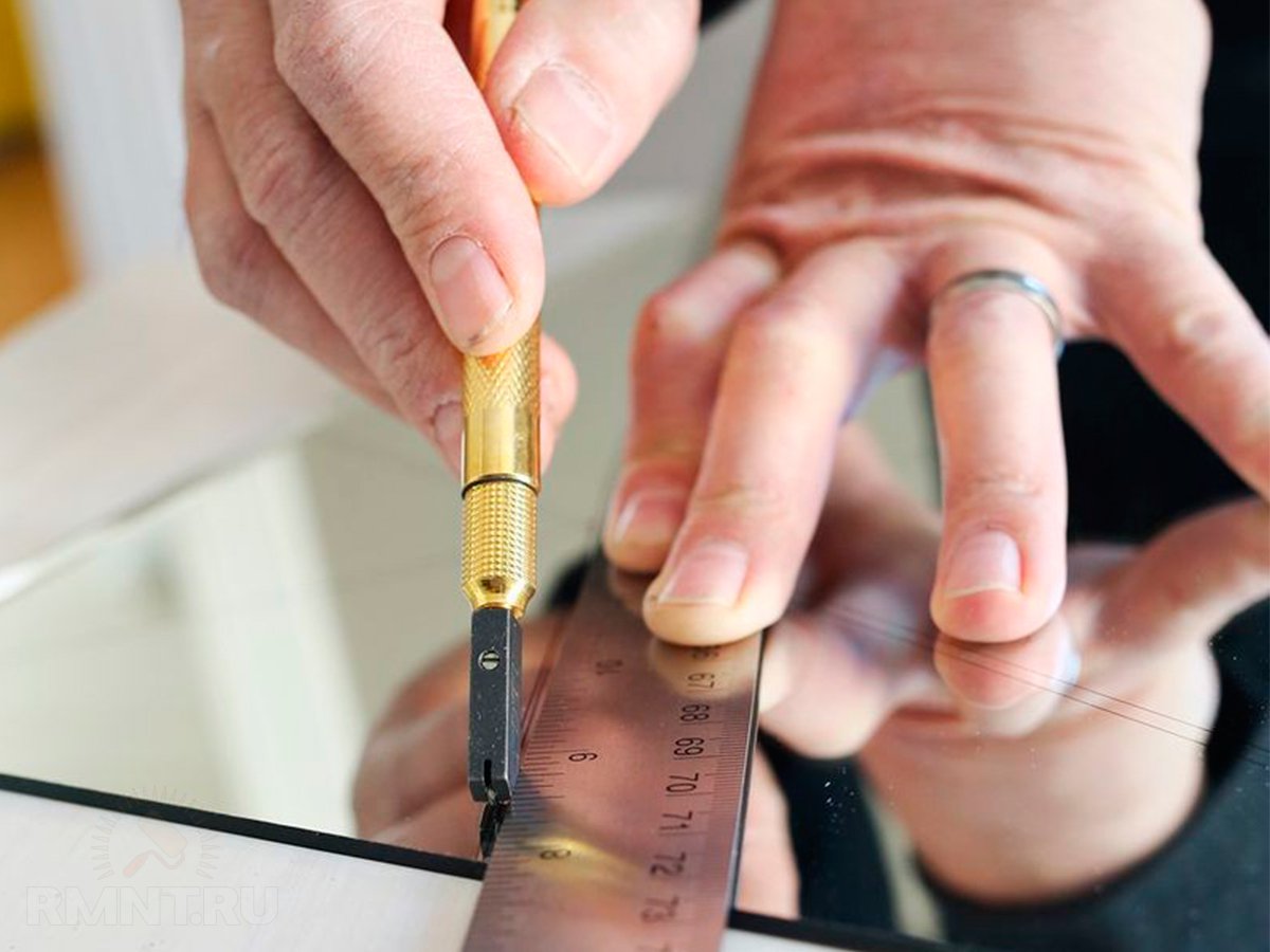 Основным знанием стекольщика является знание как правильно резать стекло, так чтобы получалось полотно необходимого размера и формы, а также чтобы края были ровными и без сколов.