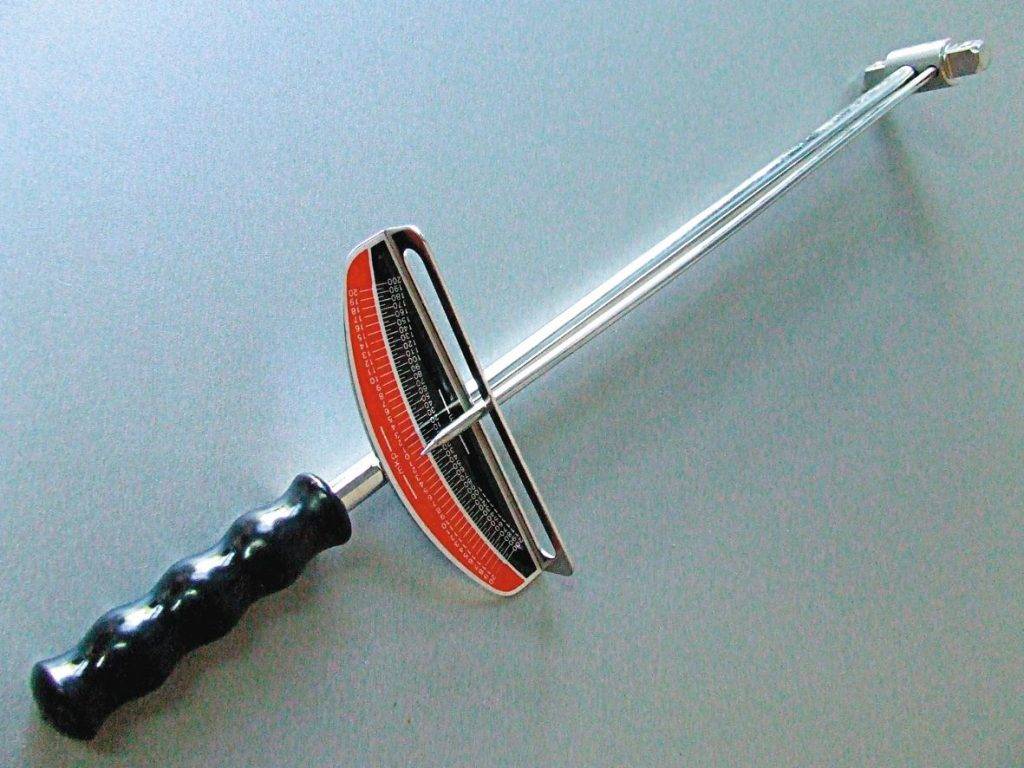 Динамометрический ключ со стрелочным индикатором, который показывает величину прикладываемой силы, работают по принципу динамометра. Устройство динамометра встроено в корпус, а стрелка и индикатор расположена сверху прибора. Квадрат для присоединения головок и насадок расположен на верхней части. Минус изделия заключается в том, что приходится улавливаться требуемое усилие, поэтому и точность приспособления ниже, чем у других типов специнструмента. Единственный ограничитель затяжки – это остановка стрелки при достижении нужной величины прикладываемой силы. Для эксплуатации автомобиля это не лучший вариант, чаще «стрелочный» используют в других отраслях. Плюсы данного изделия:
