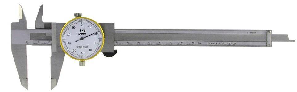 Стрелочный штангенциркуль вместо нониусной шкалы содержит циферблатный механизм. С помощью прибора легче осуществлять замеры. Его приблизительная стоимость — варьируется в районе от 1700 рублей.