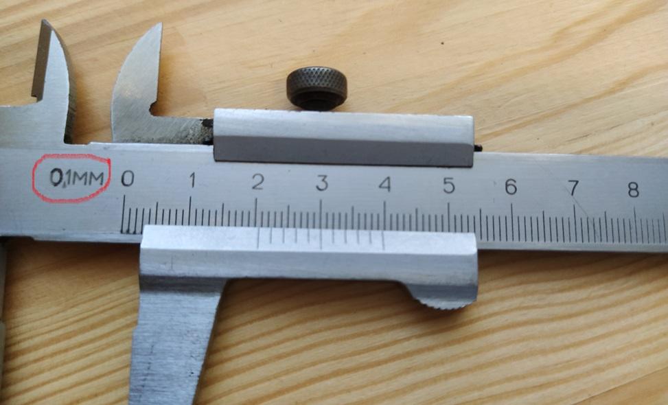 В данной для нас статье рассматривается штангенциркуль с точностью 0,1 мм. Другими словами он может измерить габариты детали с точностью до десятой толики мм.