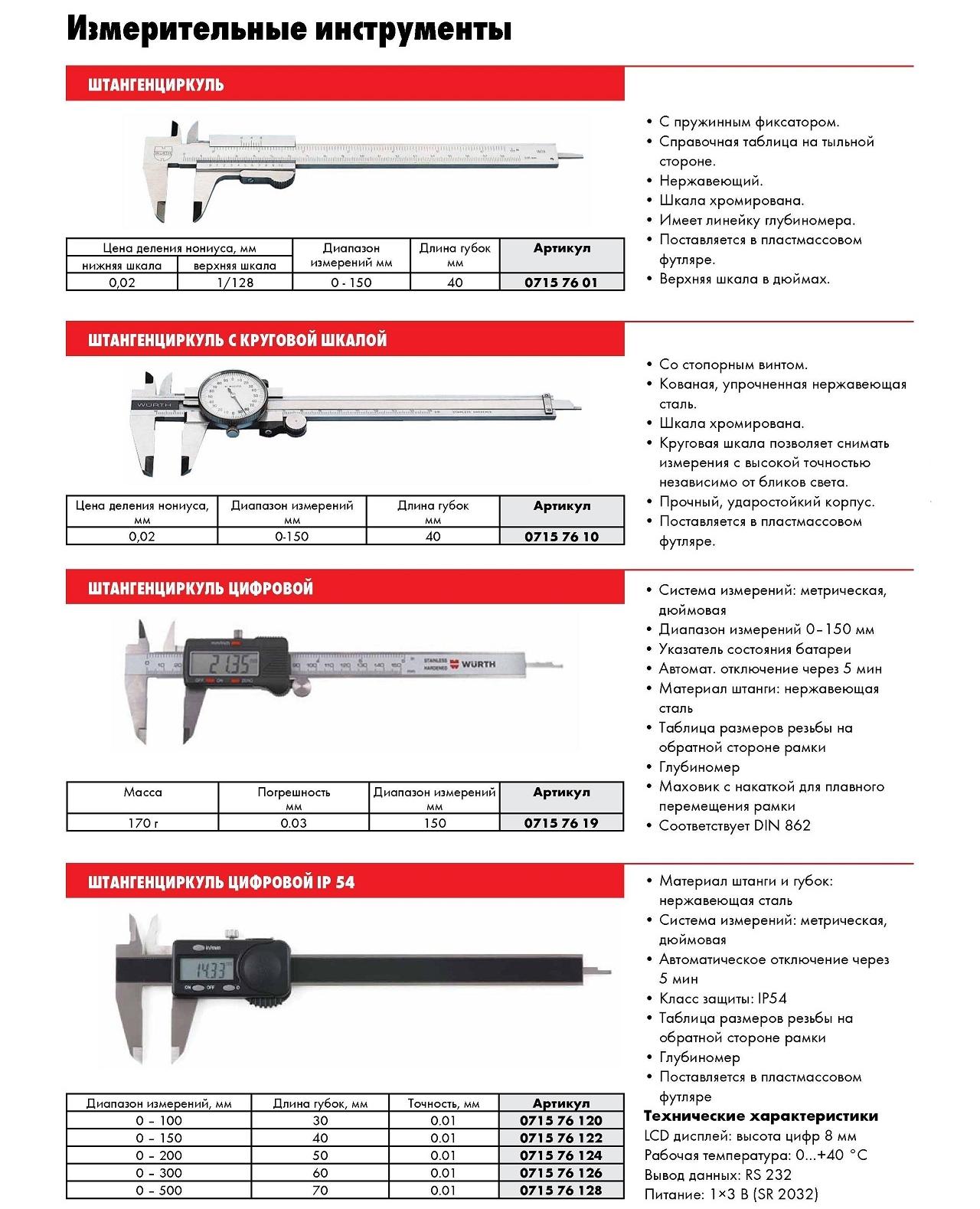 В зависимости от конструкции изделия шкала может иметь различную длину (см. таблицу выше) и, соответственно допустимый диапазон измерения. Эти цифры не совпадают. Так, если длина разметки штанги инструмента составляет 14,5 см (цифровые обозначения могут быть проставлены не полностью, что видно на фото), то замерить с его помощью можно деталь или отверстие с шириной/диаметром/глубиной до 13…13,3 см.