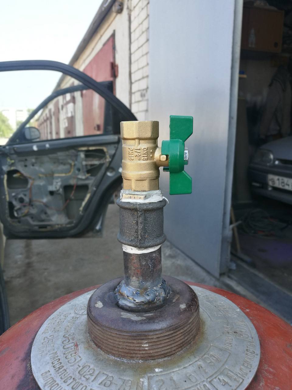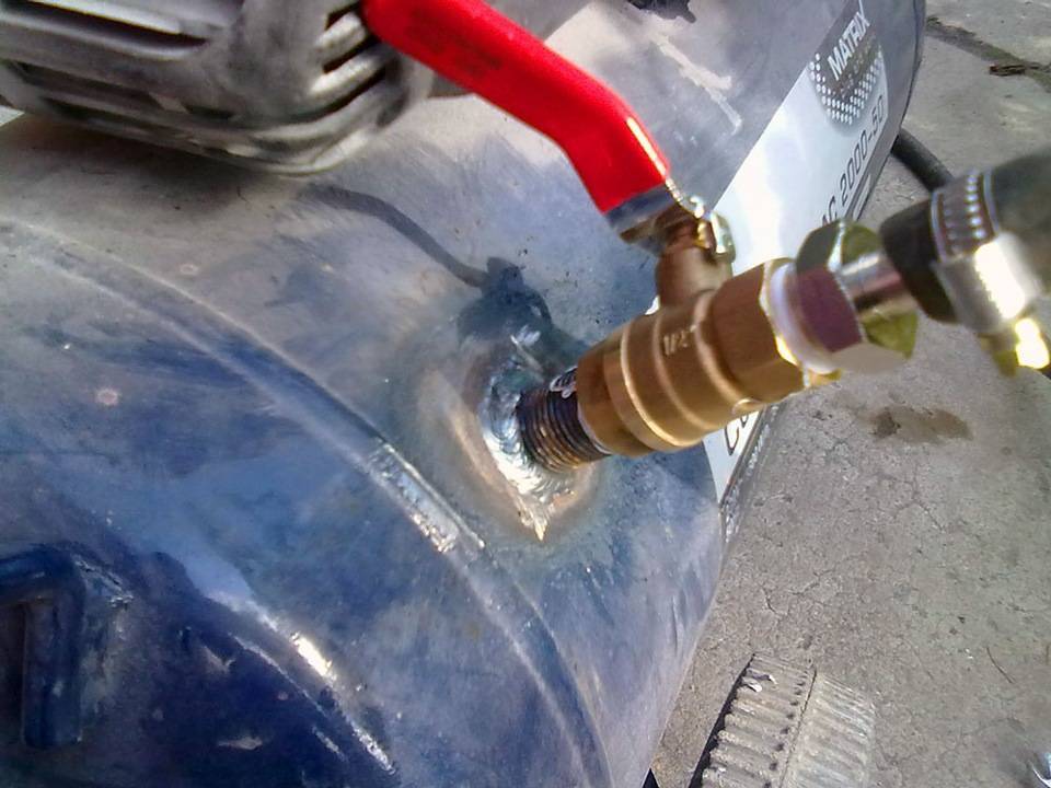 Ну и как всегда — “Не мала баба клопоту — купила порося” ))) Воздуха новый пистолет хавает в разы больше, компрессор катастрофически не справляется. Это ведь так по-славянски — создать себе проблему и потом гордо ее решать)) Купить еще один компрессор на 220v значит краснеть от стыда всякий раз проходя мимо трехфазных розеток в гараже. А так как план по постройке 3-х фазного компрессора есть, и даже имеется готовый электромотор со шкивами, то решил пока что вытянуть из старого одноцилиндрового малыша все что он может дать — врезать ему в ресивер шаровый кран чтобы брать воздух во всю дырку: