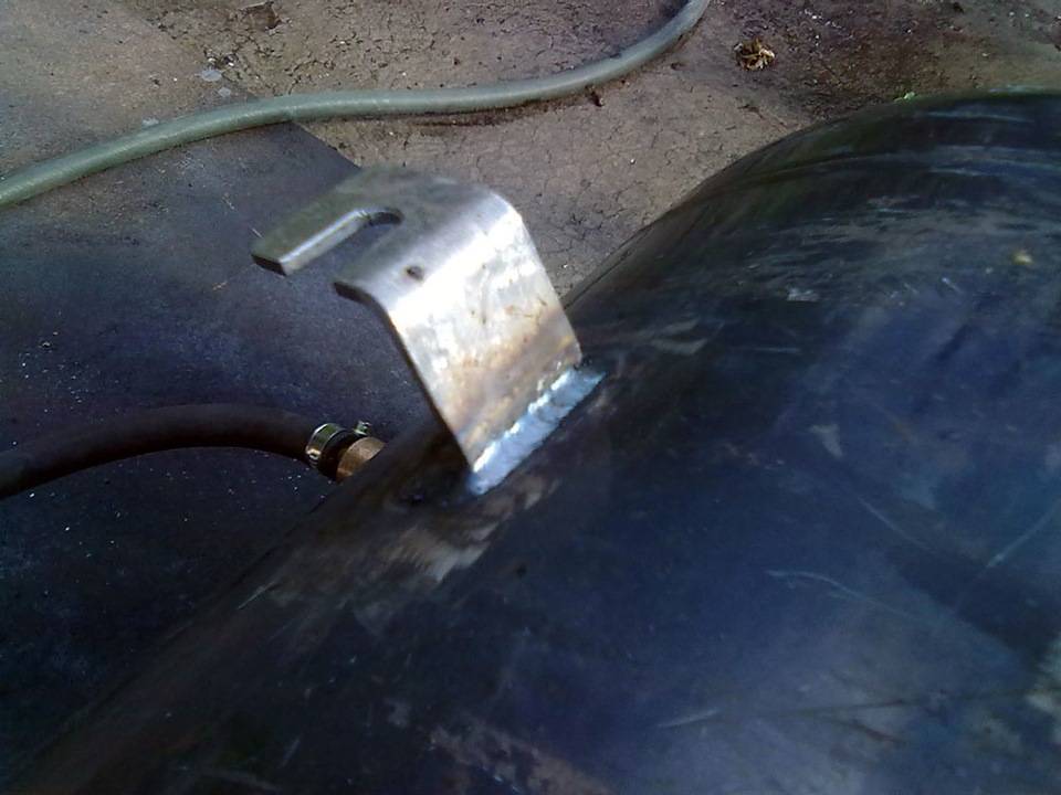 Пару суток баллон проветривался, потом наполнили его водой и начали варить. Сделал ножки из 4.5 мм стали чтобы повесить на стену вертикально…
