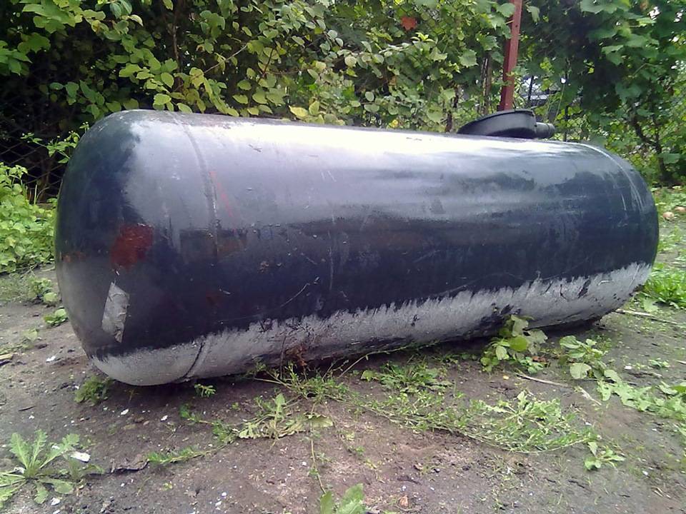 В качестве тяжелой артиллерии был куплен пропановый баллон от ГБО на 100 литров. Достался за $18 и был еще на половину полон газа))) Во время спуска в атмосферу баллон обмерзал и прекращал спускаться, по ватерлинии инея было видать сколько газа осталось)))