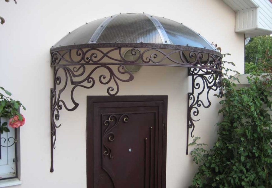 Купольные кованые козырьки являются наиболее декоративным и сложным по исполнению решением для оформления фасада.