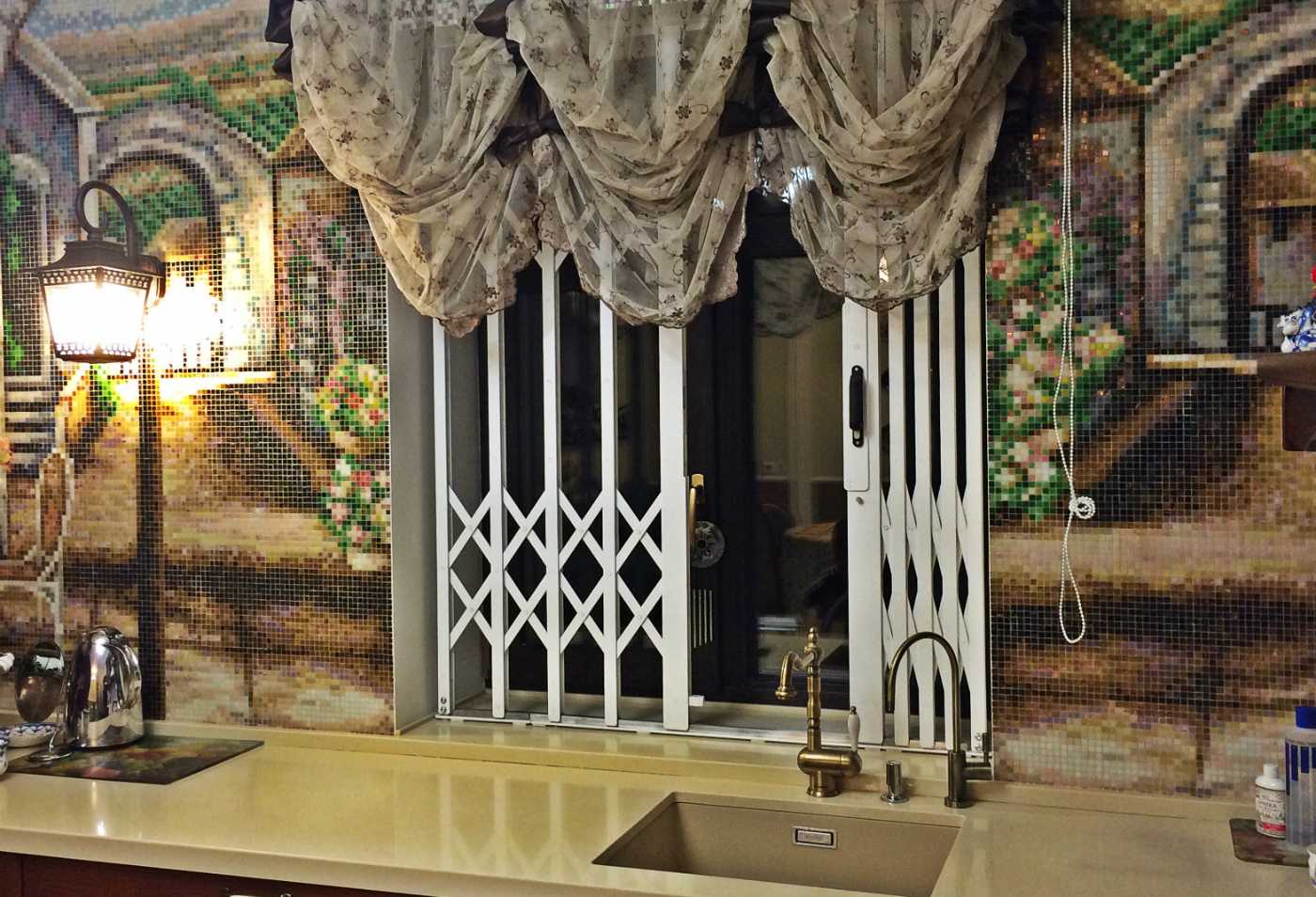 - Раздвижные решетки на окна для дачи – конструкции, отличающиеся наибольшим удобством в применении. Они могут быть открыты и закрыты посредством одного движения руки, а оригинальное расположение прутьев позволяет им складываться гармошкой. Такие изделия обладают удобством с позиции защиты оконных конструкций, а также они полезны для дверей. Существенный недостаток – отсутствие декоративной опции и возможности создания оригинального неповторимого рисунка. Да и защищенность, обеспеченная данной конструкцией, весьма средняя, ведь для исправности работы механизма используются тонкие прутья в виде пластин, легко поддающиеся поломкам.
