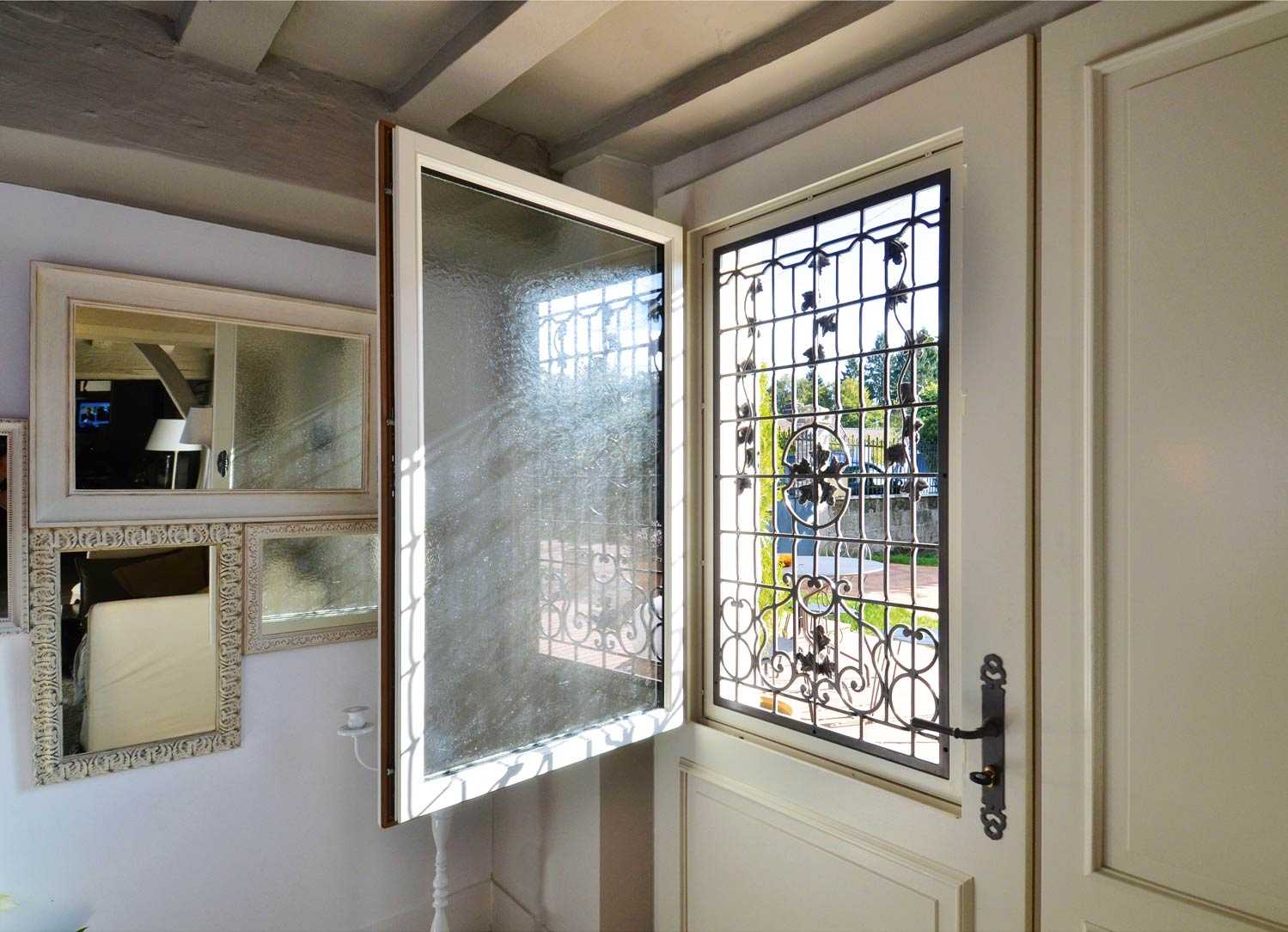 - Распашные решетки обладают несколькими или одной створкой, подвергающейся простому вскрытию и закрыванию в помещении, если возникнет острая необходимость. Монтаж изделий осуществляется посредством крепления высокой прочности, глубоко уходящего в стеновую конструкцию. Закрытие створки производится на замок или на щеколду. Открывать такие изделия не предоставляется возможным, только если при изготовлении были применены прутья высокой тонкости. В таком случае не составит труда перерезать их специальными ножницами, предназначенными для металла. Решение оптимально для тех, кто не любит слишком прочных конструкций и считает, что они создают дискомфорт.