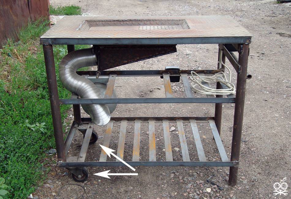 Если планируется работать в закрытом помещении, то в месте установки горна следует также дополнительно изготовить вытяжку.