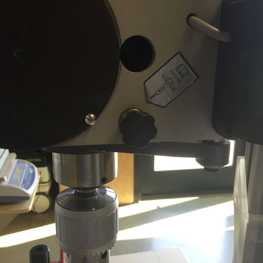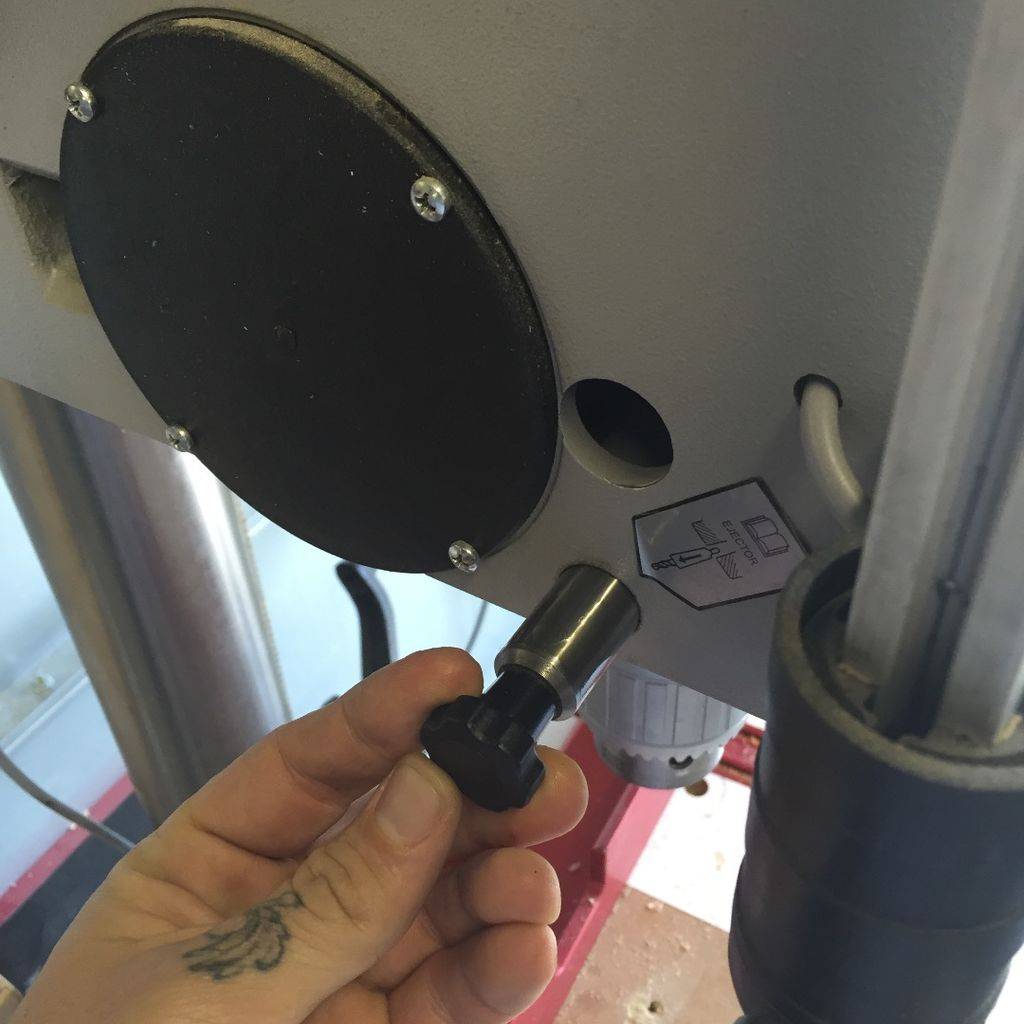 - Вытяните головку эжектора (у большинства моделей сверлильных станков отсутствует).