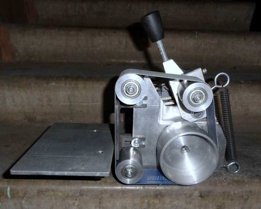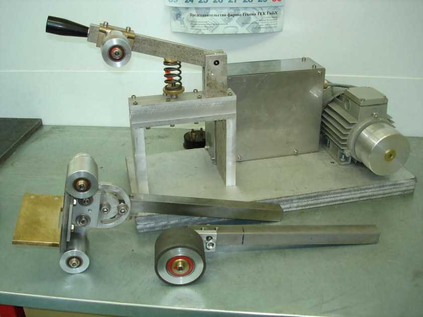 При самостоятельной сборке гриндера важно расположить ролики перпендикулярно друг над другом, чтобы избежать перекосов ленты. Для уменьшения массы ведущего катка можно сконструировать стальную деталь с полостью