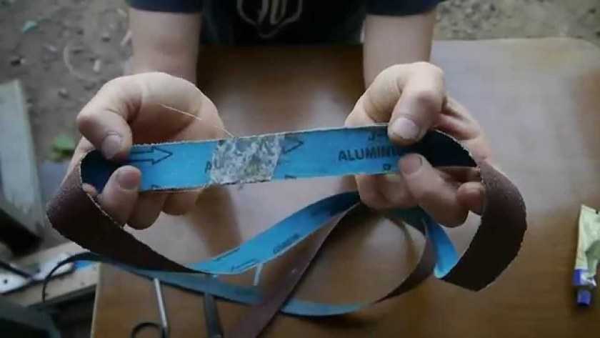 Натягивая ленту на барабан нужно следить, чтобы шов при работе не цеплялся за обрабатываемый материал, а скользил по нему. То есть соединение ленты должно лежать по направлению движения, а не против.