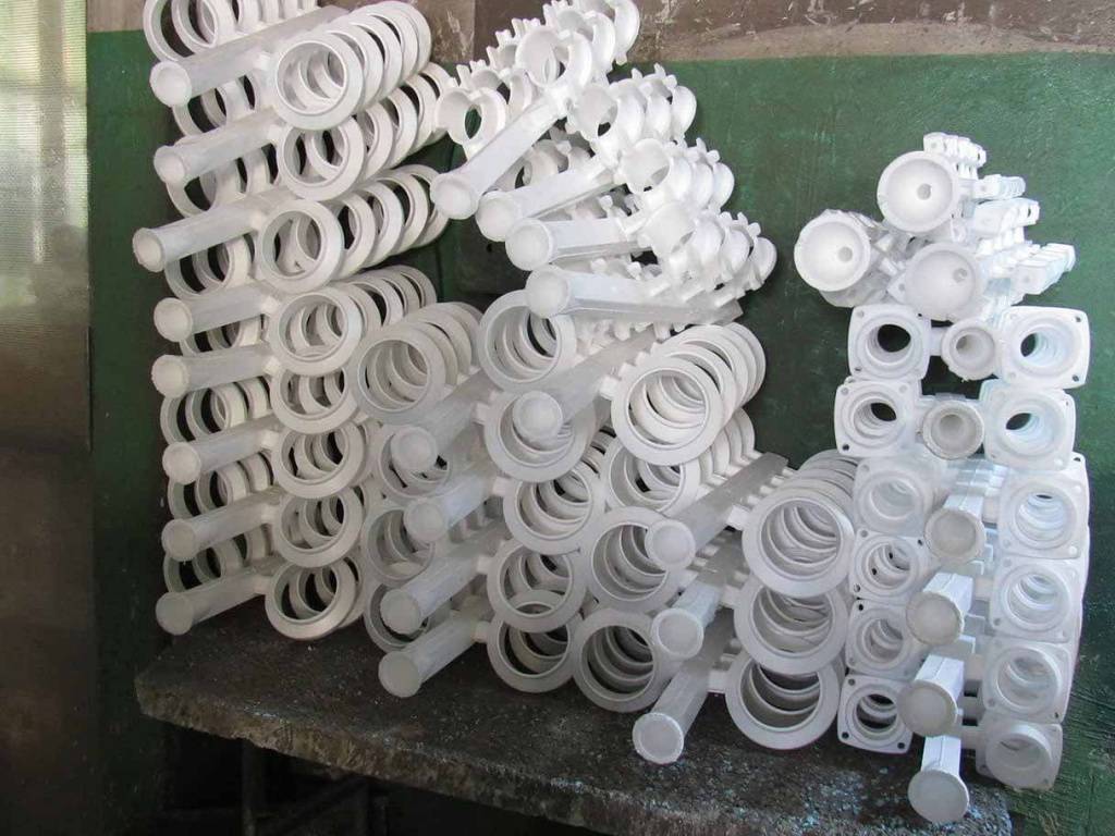 Продукты сгорания полистирола удаляются вакуумным насосом прямо через стенки формы.