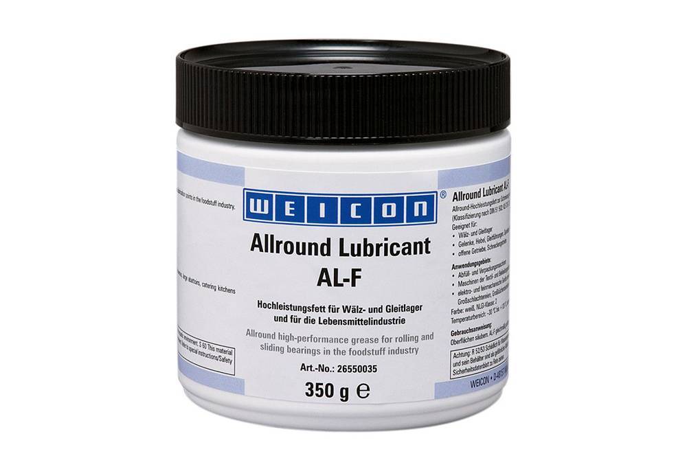 Allround Lubricant AL-F – универсальный литиевый состав для промышленности, имеет пищевой допуск. Смазка он немецкого производителя белого цвета, рекомендована для обработки подвижных узлов и механизмов, применяется в: