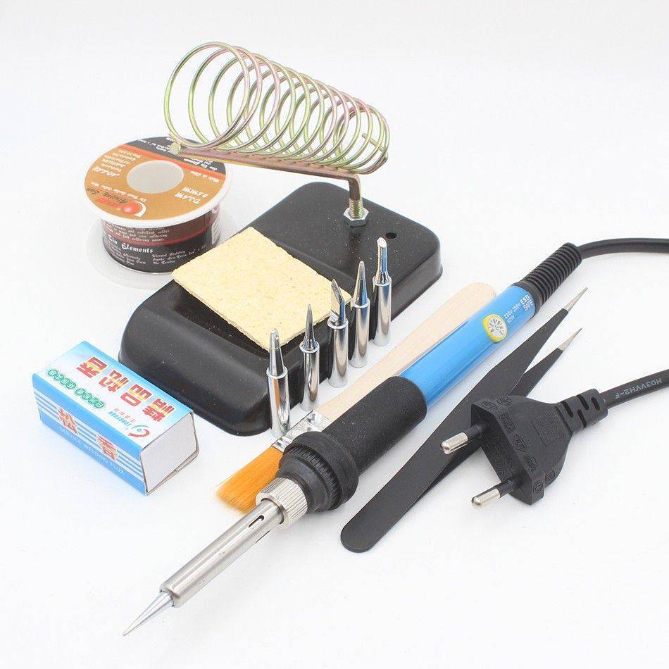 Паяльники различаются по конструкции и мощности. Для выполнения бытовых электромонтажных работ вполне достаточно обычного электрического стержневого паяльника мощностью 20—40 Вт. Желательно, чтобы он был оснащен регулятором температуры (с термодатчиком) или хотя бы регулятором мощности.