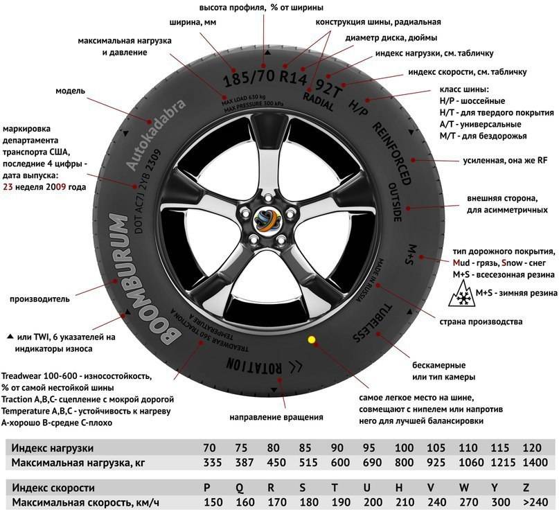 Расшифровка обозначений на маркировке шины