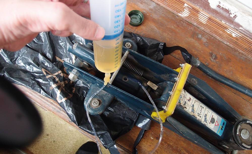 - Залить свежую рабочую гидравлическую жидкость. Для этих целей используйте маслёнку или шприц.