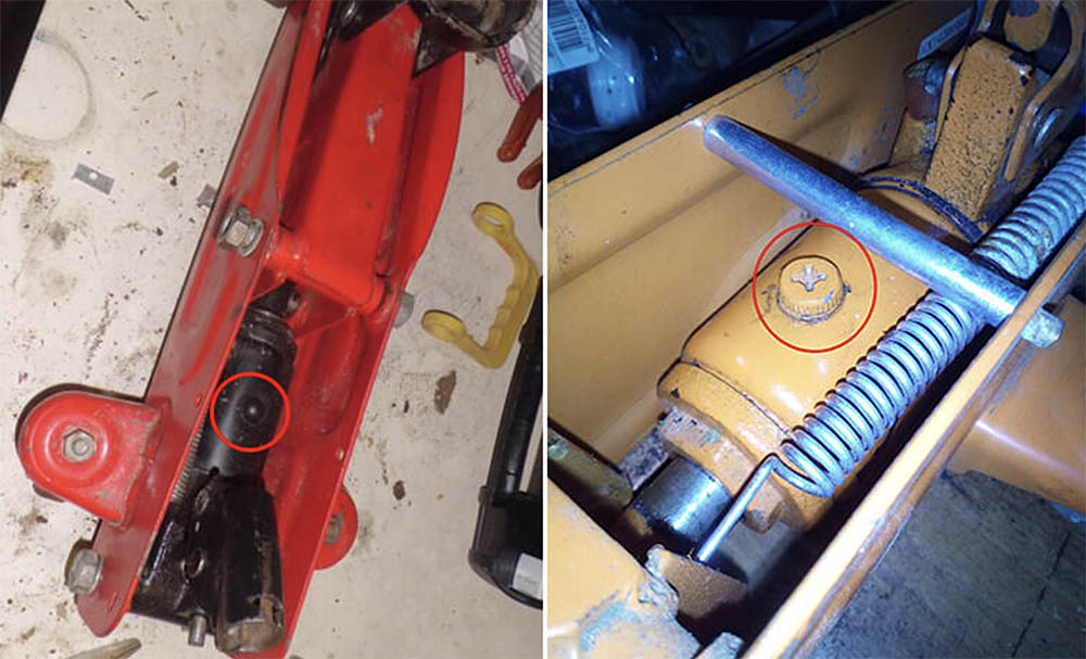 - Заливка масла в домкрат гидравлический проводится через специальный разъем. Пробка, как правило, крепится на резьбе. При замене вещества проводится прокачка конструкции, так как воздух может существенно снизить эффективность подъемного механизма. Рекомендуется проводить прокачку несколько раз, так как пузырьки воздуха сгоняются с трудом.