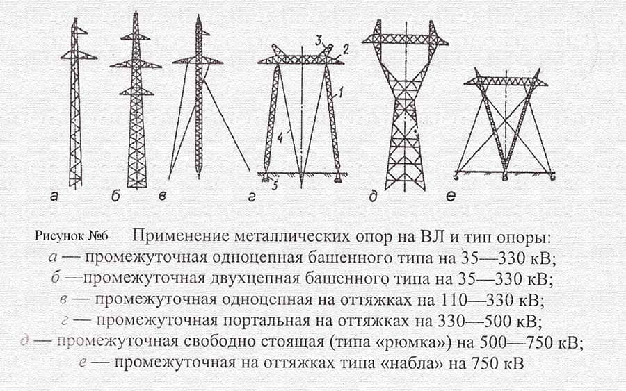 - 110, 150 и 220 кВт — распределительных ВЛ, обеспечивающих электроснабжение крупных населенных пунктов и предприятий.