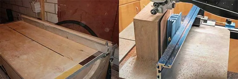 Проблема решается очень просто – нужно прикрепить деревянный брусок с помощью саморезов к параллельной планке упора. Таким образом, минимальная ширина резки не уменьшится, а возможности увеличатся.