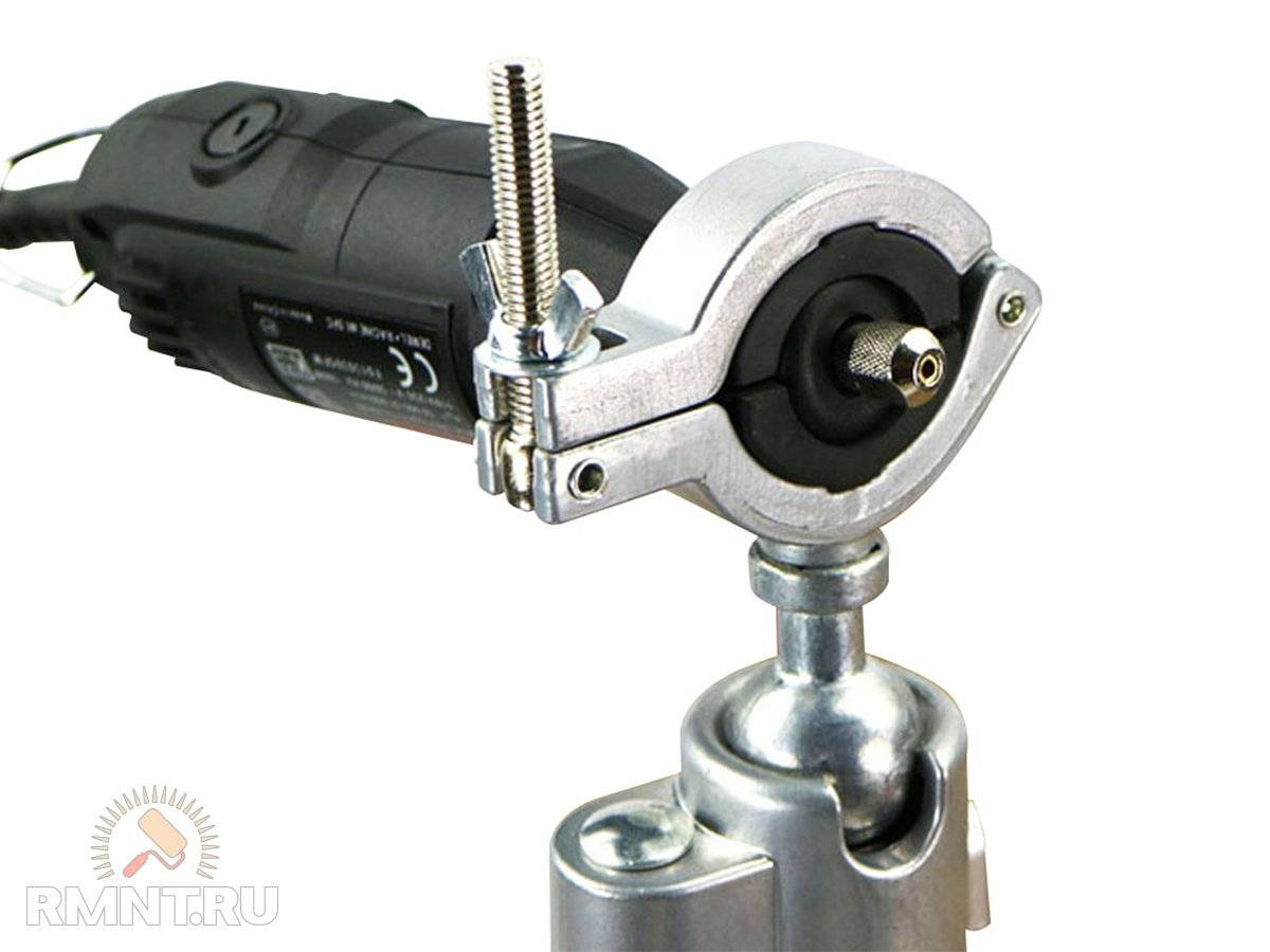 В заключение нашего обзора упомянем некоторые устройства, задача которых — облегчить работу и ещё сильнее расширить спектр возможностей инструмента. В первую очередь это касается стоек вертикальной подачи, позволяющих превратить бормашину в небольшой сверлильный станок.