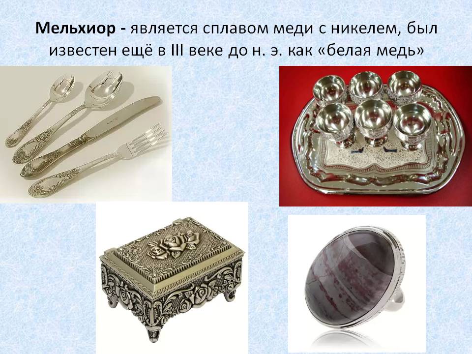 Мельхиор — это сплав, который визуально похож на серебро. Этим пользуются многие мошенники, которые подделывают благородный металл.