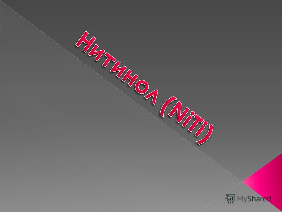 Презентация на тему: ” Нитинол, сплав никеля и титана (55% никеля, 45% титана в весовом исчислении), был создан и испытан в США в 1960- 61гг. Его появление, согласно появившемуся.” — Транскрипт: