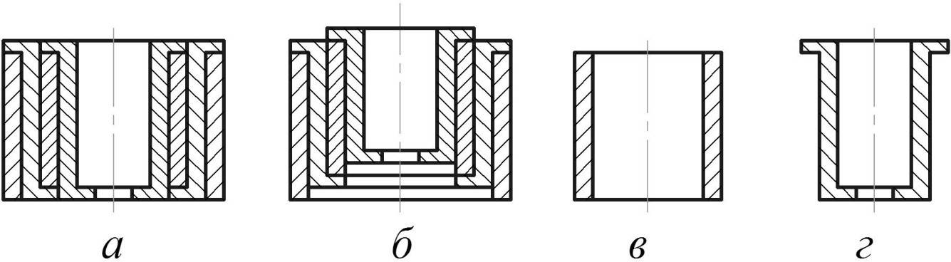 Рисунок 1 — Телескопический малогабаритный домкрат, состоящий из сквозных (в) и глухих (г) цилиндров: а – исходное состояние; б – после восстановления формы