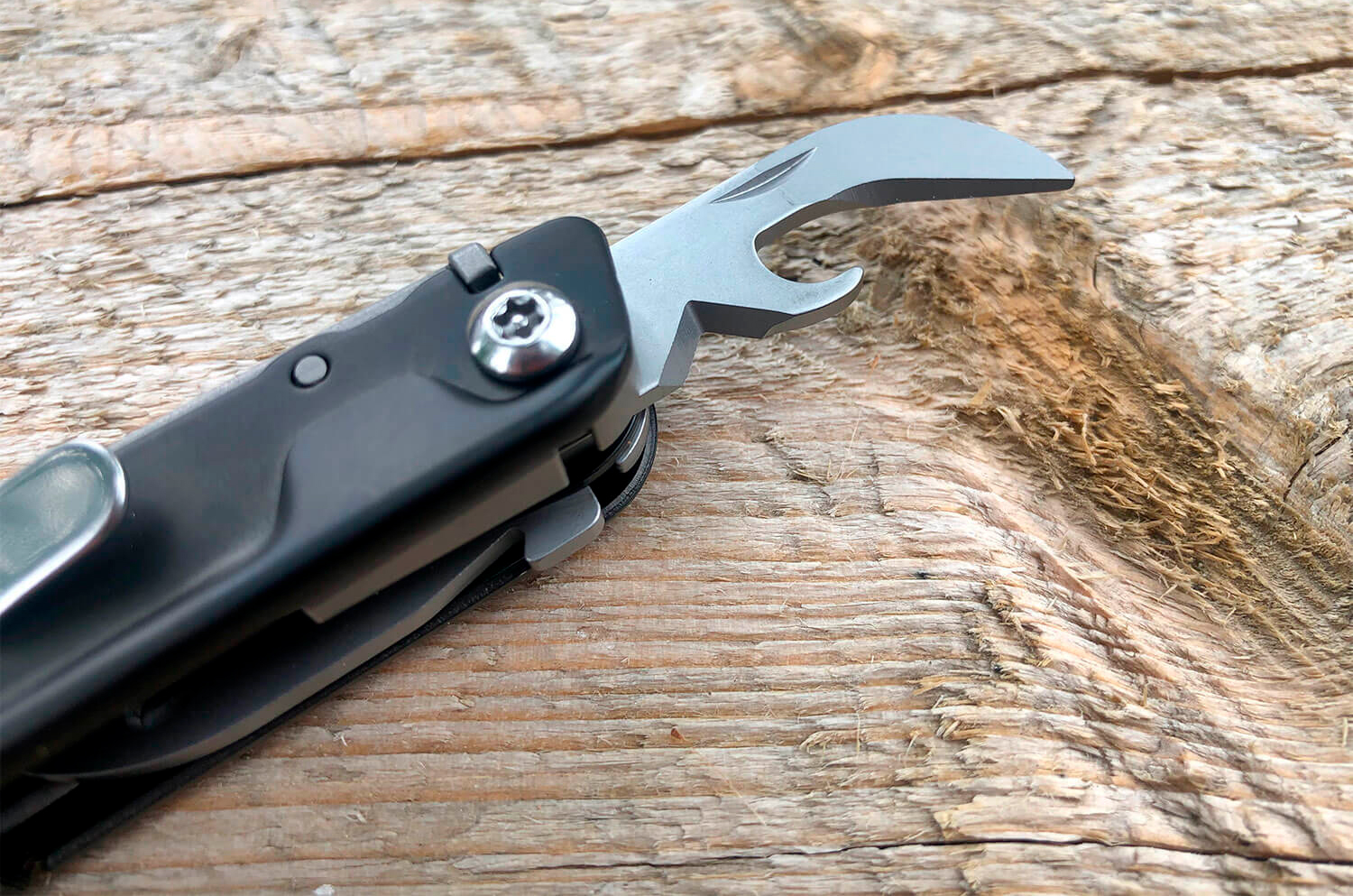 Кусачки – используются для отрезания проволоки, электрических проводов, откусывания гвоздей. Режущие плоскости кусачек у большинства мультитулов располагаются у основания плоскогубцев. У некоторых мультитулов режущие плоскости кусачек являются сменными и закреплены на винтах, что позволяет заменить их при затуплении.