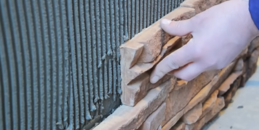 Для обеспечения более качественного сцепления камня с облицовываемой поверхностью можно применять клей для тяжелой плитки, используемый для наружных работ. Это увеличит затраты на работу, однако качество сцепления отделочного материала и стены будет лучше, а значит и вероятность того, что камень не упадет, будет наиболее высокой.