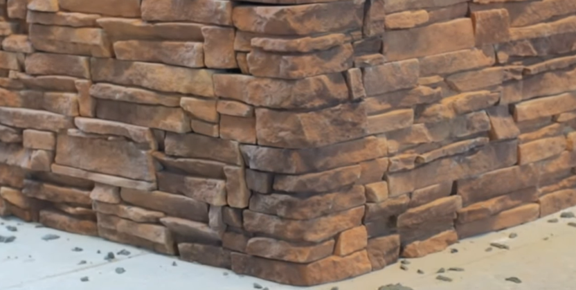 Поскольку искусственные камни имеют правильную геометрическую форму, не требуется выполнение их предварительной раскладки. Основное правило, которое нужно соблюдать при кладке без швов – выполнение перевязки. Она заключается в сдвиге каждого следующего ряда на ¼ или ½ камня. В этом случае не будет сквозных продольных и поперечных швов, которые не только портят внешний вид кладки, но и значительно ослабляют ее.