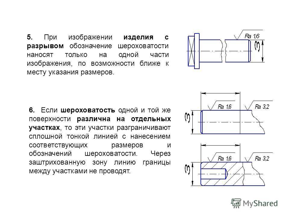 Если на различных участках одной и той же поверхности требуется выдержать различные отклонения, границу между ними указывают тонкой сплошной чертой, а размеры на чертежах вкупе с отклонением указывают для каждого участка по отдельности.